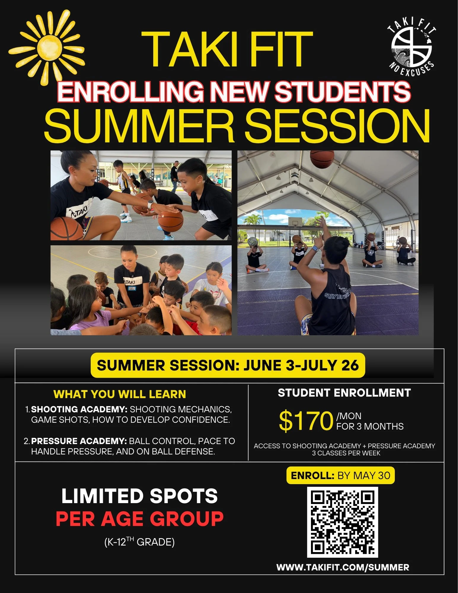 Taki Fit has been an incredible developmental program for our son. He joined Coach Sarah’s classes at five and a half years old. At first, we were worried about him being too young or small, but he was so interested wanting to learn basketball. Within a few weeks, he was dribbling and shooting without the fear of failure. Within months, he developed the confidence to compete alongside kids his age, as well as older ones.